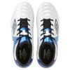 『ACCERATOR』シリーズのスタータープレーヤー向けシューズ。日本国内企画のワイドラスト。アンブロが持つフィッテイングサポートファンクションのAフレームをグラッフィクデザインで表現。インステップキック時のインパクトを意識しやすいプリント加工を採用。アッパー材全体に耐久性のある合成皮革を採用。前足部には伸び過ぎを抑制するステッチをしっかりと配置。ジュニア世代の足の事を考えたラバー製スパイクソール。Aフレームパーツを採用。地面からの突き上げを感じやすい踵部分に衝撃緩衝材『U/メモリーF』を搭載。取り外し可能なEVAカップインソール。約185g(22.0cmで計測)