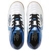 『ACCERATOR』シリーズのスターター/ステップアッププレーヤー向けシューズ。日本国内企画のワイドラスト。アンブロが持つフィッテイングサポートファンクションのAフレームをグラッフィクデザインで表現。インステップキック時のインパクトを意識しやすいプリント加工を採用。ノンマーキング仕様のインドアコート専用アウトソールを採用。Aフレームパーツを採用。アッパー材全体に耐久性のある合成皮革を採用。クッション性と反発性を考慮したインジェクションEVAをミッドソールに採用。取り外し可能なEVAカップインソール。約150g(19.0cmで計測)