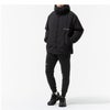 ブランドロゴとメッセージロゴのみをプリントしたシンプルな中綿フードジャケット。