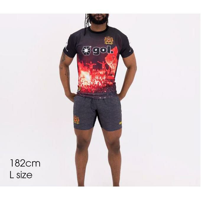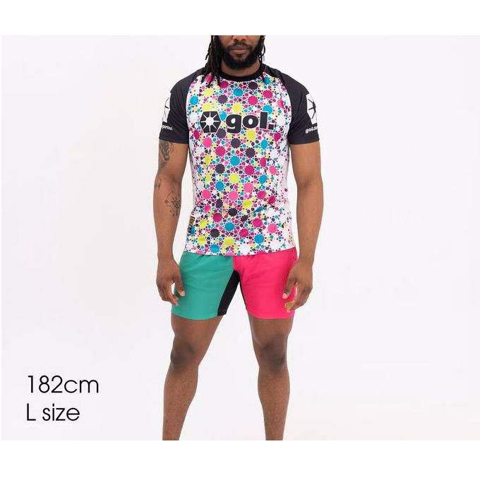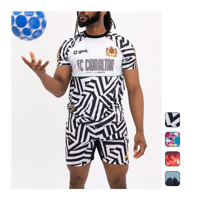 ●今シーズンgol.がボールと一緒に旅をしているのはモロッコ。北ではジブラルタル海峡を挟んでスペインと向き合い、南には広大なサハラ砂漠が広がっている。アラブ、ベルベル、ヨーロッパ、アフリカとさまざまな文化が混在。街の匂いがいままでとは違う。ストリートではギラついた目つきの男たちがこちらの様子を窺っている。2022年にはアフリカ勢初のベスト4に進出した、この国のローカルフットボールを強く感じに日出る国から日没する国へのジャーニーをはじめる。国内リーグの熱狂はすさまじく、発煙筒と声援の勢いがオレたちに襲いかかってくる。そのフットボールへの熱量がそのまま代表チームを後押しするパワーになっているように感じた。ここで感じたこの感覚、それをシャツのデザインに落とし込んでいるのがこのプラクティスシャツシリーズだ。