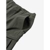 ナイロンとポリウレタンのツイル素材はストレッチ性が高く、適度な厚みがありながら動きやすい生地。左右に大きなカーゴポケット、さらに両サイドと右ヒップにもファスナーポケットを配置し、収納力を高めています。ウエストはサイズ調整のしやすいスピンドル仕様。