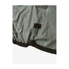 ビーズ加工を施した透明ラミネートフィルム・Clear-Dは肌触りがよく、汗をかいてもべとつきにくいのが特長です。フロントは止水ファスナーを使用し、防水性に加え軽量性も重視。ワンハンドアジャスター対応のフードは、フィット感を高めつつ、視界をさえぎりにくい形状に仕上げています。携行に便利なスタッフサック付き。