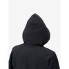 乾きやすさを考慮し、リサイクルポリエステルを混紡しています。フード部分のロゴは立体刺繍で表現。