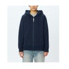 乾きやすさを考慮し、リサイクルポリエステルを混紡しています。フード部分のロゴは立体刺繍で表現。