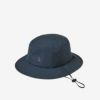 ツバの芯材にも軽量でやわらかな素材を使用し、コンパクトに携行することもできます。後部にフィット感を調整できるドローコードを備え、あご紐はスタイルに合わせて取り外し可能。コーディネートしやすいベーシックなデザインとカラーバリエーションで、トレッキングや野外フェスなどのアウトドアから、普段使いにも幅広く活用できるアイテムです。