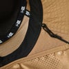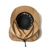 シルエットはライニングを取り除くことで、軽量かつ着用時の蒸れが軽減されたアドベンチャーハット。 アイレットは刺繍仕様。あご紐とサンシェードは着脱可能。