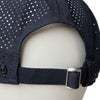 取り外し可能なサンシェードは風や水が抜けるようにレーザーホールメッシュ加工でチームロゴをデザイン。スウェットバンドには抗菌効果のあるMICROERAを採用。トップボタンは錆をさけるプラスチック製です。
