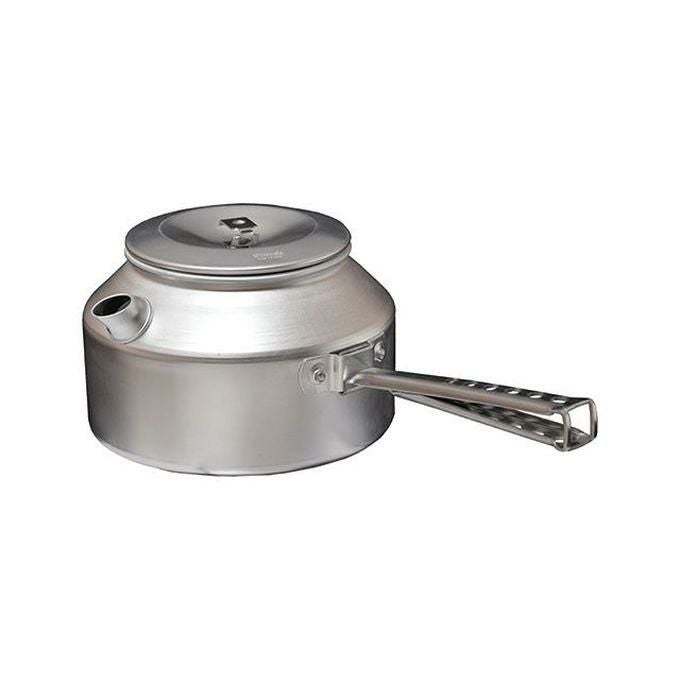 リッドのノブがステンレスでできている焚火に適したケトルです。