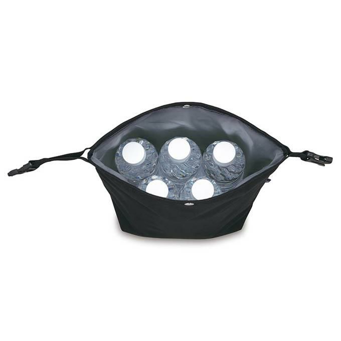 マチが広いロールトップ型の保冷バッグ口を折り返してバックルを留めるだけ!