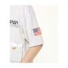 NASAワームロゴを使用したポケット付きのTシャツ。全体的にゆったりしたオーバーサイズシルエット。宇宙服に欠かせない多ポケット仕様で、別地フラップが特徴的。左袖にはアメリカ国旗のワッペンをレイアウトし、ストリートライクにも合わせやすい一枚。