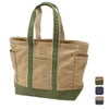 使い込むほどに味が出て経年変化を楽しめる、コットンキャンパス地のトートバッグ。外側に3個のポケット、内側にもハンギングポケットが付属し、小物の収納性にも優れています。