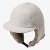 表地には防水透湿性に優れたナイロンオックス生地を採用。耳当て部分のポリエステル素材のファーは、リアルファーのような色合いと肌触り。毛足が長く、デッドエアをため込み保温性を高めています。縫い目はシームシーリング加工済み。耳当てはテープバックルで頭部に巻き上げることも可能。UVプロテクト(UPF50+、紫外線カット率95%以上)機能付き。
