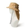 シルエットはライニングを取り除くことで、軽量かつ着用時の蒸れが軽減されたアドベンチャーハット。 アイレットは刺繍仕様。あご紐とサンシェードは着脱可能。