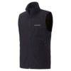 コットンのような柔らかさと肌触りを持つ薄手のナイロン生地を使用した、軽くてシンプルな防風ベストです。腰ポケット内のドローコードで、すそのフィット感を簡単に調節可能。首元の日焼け防止に役立つスタンドネック仕様です。