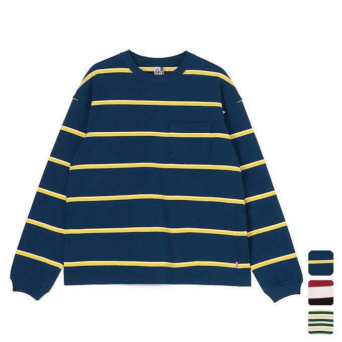 ざっくりとリラックス感のあるオーバーサイズのボーダーロングスリーブTシャツ。ゆったりしたボックスシルエットで、フロントに胸ポケット、左サイドにCHUMSロゴのピスネームを配備。キャッチーな配色と、色によってボーダーのピッチが異なる点もポイント。