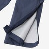 生地には軽くやわらかく、防水透湿性に優れたハイベント2層構造を採用。すべての縫い目にシームシーリングを施し、雨の浸入を抑えます。ジャケットのフロントには開閉がしやすいはっ水ファスナーを使用。パンツは靴を履いていても脱ぎ穿きができる裾ファスナー仕様で、裾のドットボタンで裾幅を簡単に調節できます。ジャケットとパンツにはそれぞれリフレクトロゴを配置し、夜間や雨天時の視認性を高めています。コンパクトに収納でき、持ち運びに便利なスタッフサック付き。