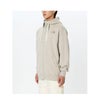 乾きやすさを考慮し、リサイクルポリエステルを混紡しています。フード部分のロゴは立体刺繍で表現。