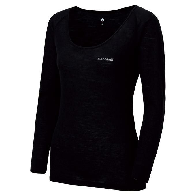 5. モンベル mont-bell レディース トレッキング アウトドア アンダーウェア シャツ 長袖 スーパーメリノウール L.W.Uネックシャツ Women's 1107663 BK 【2025SS】