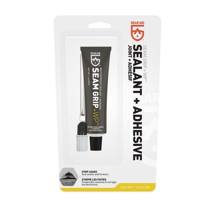 レインウエア、テント、タープ、バックパックなどの縫い目を目止めして防水性を高める接着剤です。熱や寒さの影響を受けにくく、磨耗にも強いため穴あきや破れの補修が長持ちします。 1本で、平均的な2人用テントの主要な縫い目を目止め加工できます。