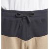 起毛した肌触りの良いポリエステルモールフライス素材。両サイドとヒップ右側にポケットが付く。デザインアクセントとして上下部分で切替仕様。レングスはスタンダードな18インチ仕様。