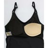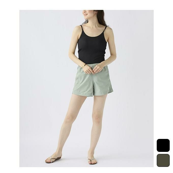 ストレッチ性が有り、UVカット、耐塩素の機能付きリブで水陸着用可能なハイブリッド商品。Backが深く 開いたカップ付きキャミソール。カップは取り外し可能。肩紐長さ調整可能。