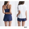 ラッシュT、ブラトップ、ボトムの3点セットのスイムウェア。シンプルなロゴとロゴマークをアクセントにして、単体でも使いやすいデザインに仕上げました。ハーフトップのストラップはバッククロスで動きやすさに配慮。ボトムはキュロットタイプでインナーショーツ付き。小さなバックポケットをあしらいました。