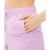 リサイクルナイロンとナイロンの混紡素材のフルダル素材でシボ感が特徴的なショート丈サーフトランクス。ボディと同色でフロントサイドにウェーブアイコン刺繍、バックポケットにはロゴ刺繍、水抜き用アイレットが施されています。ウエストバンドはゴム仕様になっており、ウエストのドローコードでサイズも調節が可能。シンプルなデザインでどんな水着にも合わせやすいアイテムです。