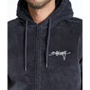 表地に上品な光沢があるインディゴベロア生地を使用した中綿入りジップアップパーカー。独自の洗い加工WAVE WASHEDを施し、ヴィンテージライクに仕上げました。裏地にはムラ染め風のボアフリース生地を使用。