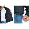 マットな質感のポリタフタにリサイクルポリエステルからのちぎり綿を採用したパフジャケット。 ダウンフェザーのようなボリューム感が特徴です。 Y2Kを感じさせる仕様は懐かしさと新鮮さを兼ね備えた万能アイテムで、左胸のウェーブロゴがポイント。