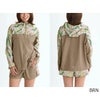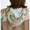 マット感のあるポリエステル素材を使用したシェルジャケット、着丈長めのボックスシルエットです。無地とシーズン柄でブロッキング、上身頃から袖に続くスポーティな切り替えラインがポイントになっています。脇にはスラッシュポケット付き、裾はドロストコード入りでシルエット変化を楽しめるデザイン。ショートパンツとセットアップでのコーディネートがおすすめです。撥水加工付き。