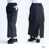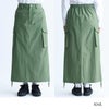 コットンナイロン素材のカーゴタイプロングスカート。すっきりとしたIラインなので細見え効果もあります。裾にはドローコードをあしらっているので、着丈やシルエットチェンジも楽しめます。秋テイストで、季節の立ち上がりから活躍してくれます。クロップド丈のトップスと相性◎です。