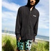 92%ポリエステル / 8%エラスタン素材を使用したルーズフィットのフード付きスラッシュガード。50+UV保護機能を備え、快適さと高い保護性能を提供。