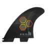 ロッカーが少し緩やかでフラットなボードでもレスポンスとターン性能を維持できるフィンが必要だったからだ。」