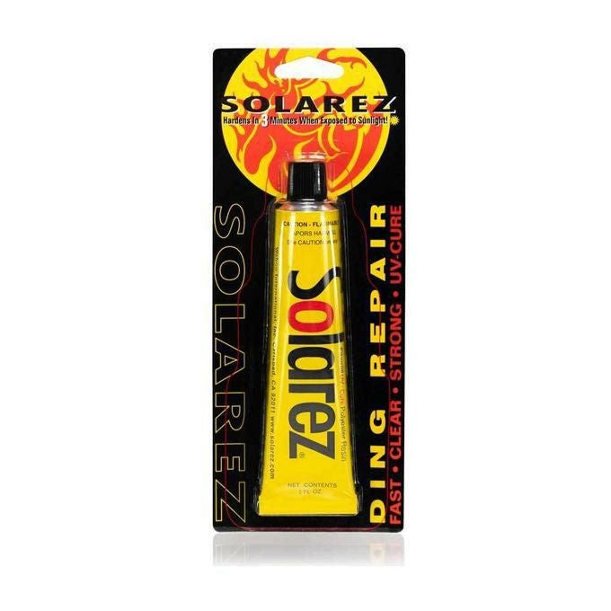 フォームボードすべての修理に太陽光で硬化する特殊なグラスファイバーが配合されたポリエステル樹脂。紫外線により化学反応し、硬化する誰にも簡単に使える修理剤です。深さ1cmまでのキズに対応。