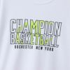胸には「CHAMPION BASKETBALL(チャンピオン バスケットボール)」、「ROCHESTER NEW YORK(ロチェスター ニューヨーク)」とCロゴを組み合わせたグラフィックを、左袖には「ONE BALL ONE LOVE(ワンボール ワンラブ)」をラバープリントで入れています。