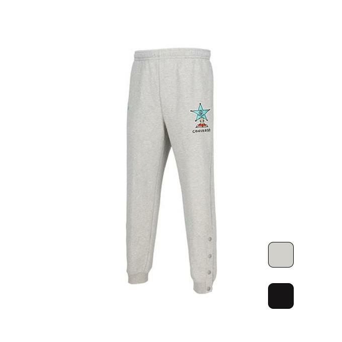 コンバースのジュニアスウェットパンツ。Yutaka Kobayashiさんの星のイラストを採用。裏地はタオル地のように柔らかい、頑丈で汗を吸収しやすい素材を使用。裾ボタン仕様。
