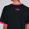 襟、袖口にボディカラーと異なる色を使用したリンガーTシャツタイプ。
