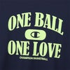 胸にはカレッジテイストの書体を使った「ONE BALL ONE LOVE(ワンボール ワンラブ)」とCロゴ、背中裾には「CHAMPION BASKETBALL(チャンピオン バスケットボール)」をラバープリントで入れています。