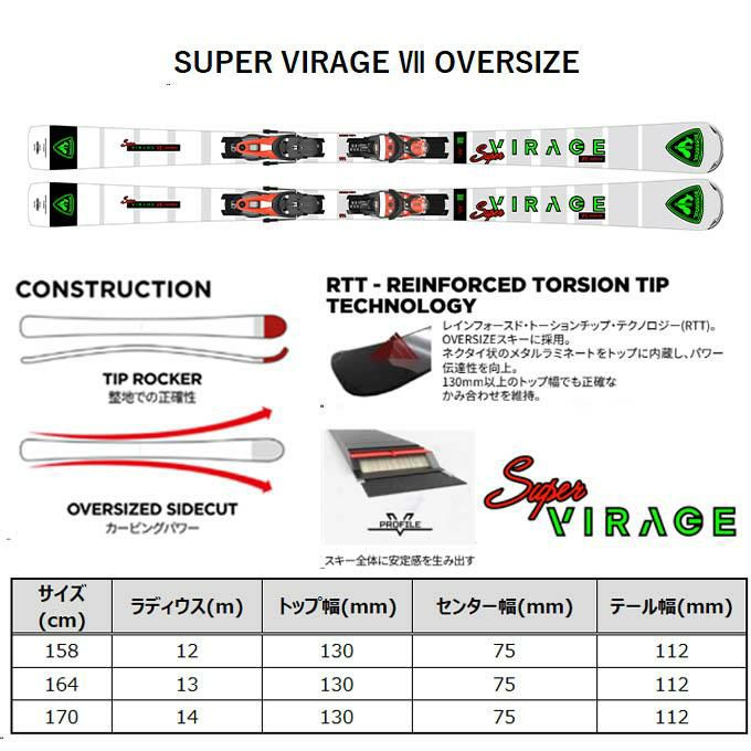 ROSSIGNOL ロシニョール スキー板 【2024-2025】 SUPER VIRAGE VII OVERSIZE(スーパーヴィラージュ 7オーバーサイズ)+ NX 12 KONECT GW B80 BLACK HOTRED 【金具付き スキーセット】