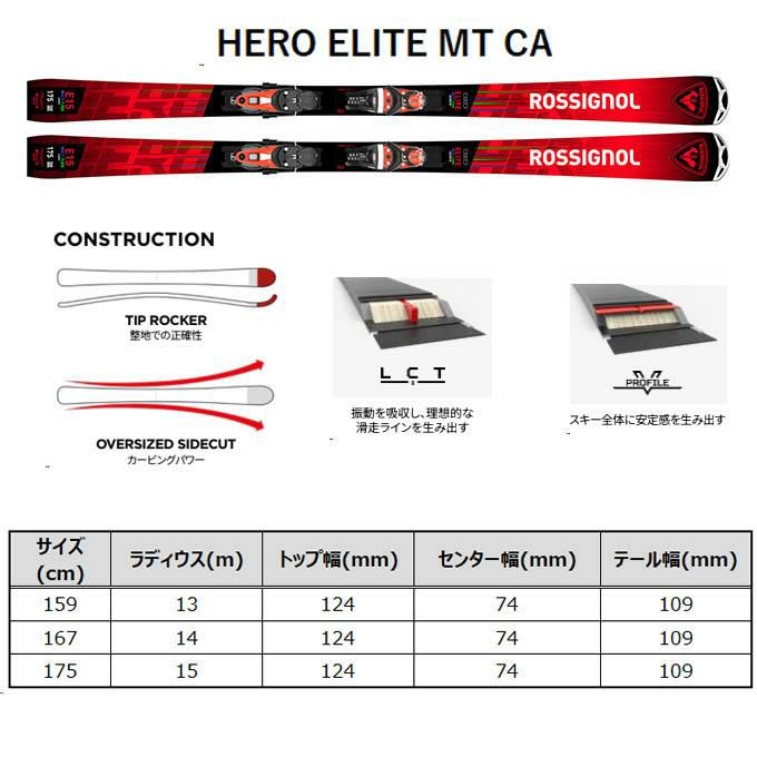ROSSIGNOL ロシニョール スキー板 【2024-2025】 HERO ELITE MT CA (ヒーローエリート MT CA )+ NX12 KONECT GW B80 Black Hot Red 【金具付き スキーセット】