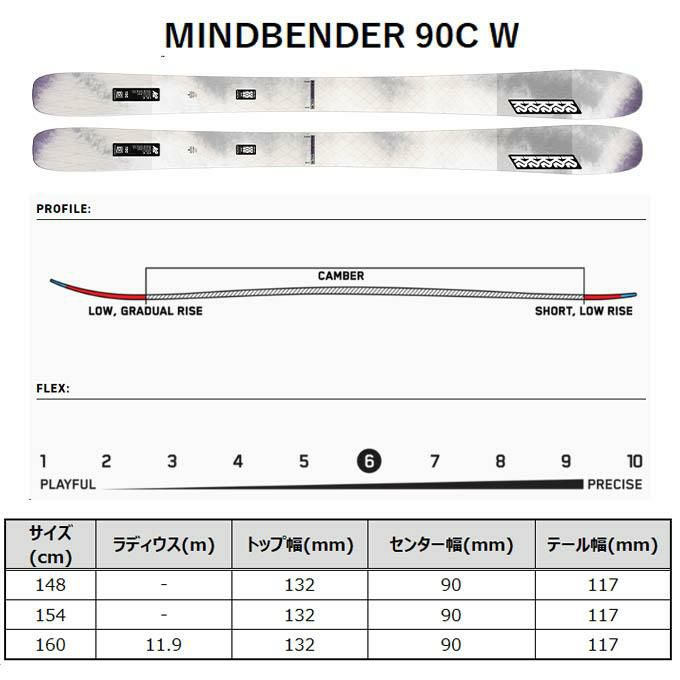 K2 ケーツー スキー 板 レディース 金具付 【2024-2025】 MINDBENDER 90C W マインドベンダー 90C W + SQUIRE 10 D 100mm QUICKCLIKスライドサイズ調整式 【金具付き スキーセット】