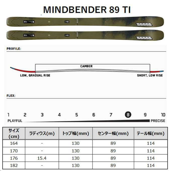 K2 ケーツー スキー 板 金具付 【2024-2025】 MINDBENDER 89 TI マインドベンダー 89Ti + GRIFFON 13 D 90MM スライドサイズ調整式 【金具付き スキーセット】