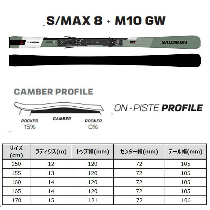 SALOMON サロモン スキー板 【2025-2026】 S/MAX 8 エスマックス8 + M10 GW 【金具付き スキーセット】