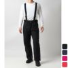 ウエストのストレス軽減を追求したスキーパンツ。ウエストの許容時範囲を”10cm”と大きくゆとりを持たせつつも、シルエットはスマートに見える精巧に形成したパターン。サスペンダーのウエスト取り付け位置を2段階で調節が可能。お腹が気になる方や女性の胸を締めつけません。無地でベーシックなデザインはジャケットを選びません。