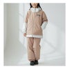 レイヤードテイストの上下セット(ジャケットとパンツ)のセパレートタイプです。ジャケットの袖とパンツの股下にサイズ調整ひもが付いており、約15~20cmの長さ調整が可能です。お子様の成長に合わせて長く着用できます。