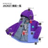 【機能】ストレッチ素材、リサイクル&C0撥水剤使用、着脱フード、フードシャーリング、起毛トリコット使用、笛引き手、サイズ調節機能、反射ワッペン、ジャケット裾ドローコード、ZIPポケット、ハイウエストパンツ、サスペンダー調節機能、ノンシームヒップ、足口スパッツ、おさがりネームタグ、JIS基準対応