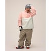 2 レイヤー素材による立体的なシルエットのスノーパンツです。セミワイドのシルエットでルーズになること無く、誰でもキレイなラインで着こなせます。膝上後方の独特な形状のカーゴポケットが存在感を放ちます。裾はジョガーパンツスタイルです。腰回りにはパウダーガードがついています。
