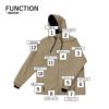 【機能】笛引手 、フードアジャスター、再帰反射パイピング、左内ポケット、リストゲーター、キーフック、パスケース、パウダーガード、裾ドローコード、脇ポケット×2、右内メッシュポケット、高機能素材仕様