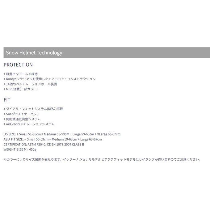 抜群なフィット感と機能が詰まったMission。スタンダードなフォルムを最新鋭の表面カッティングデザインで処理。落ち着いたスタイルの中にも躍動感を表現。軽量かつ耐久性が高いインモールド・コンストラクションに加え、転倒時に最も衝撃を受けるインパクトゾーンにコロイドを採用したエアロコア・コンストラクション。レギュレーターベンチレーション機能がヘルメット内部の熱気を放出する。FIT、軽さ、耐久性、安全性、ヘルメットに必要なすべての要素を備えるSki/Snowboard共有のオールラウンドヘルメット。