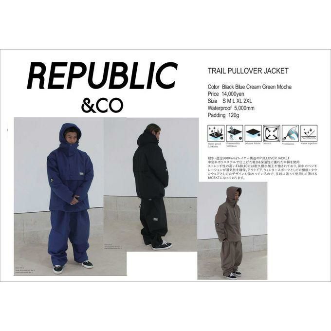リパブリック REPUBLIC&CO メンズ レディース スノーボード ウェア ジャケット TRAIL PULLOVER JACKET 【23-24モデル】